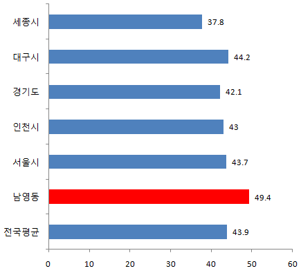 노인수,출생사망,연령대별,인구비 등 남영동의