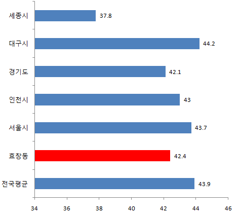효창동 3월 평균연령은 42.4세입니다