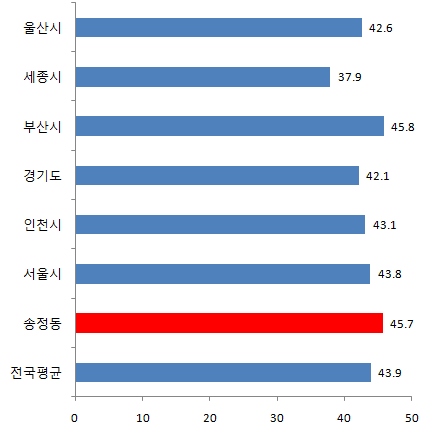 성동구 인구의 3.66%가 송정동에 거주합니다.