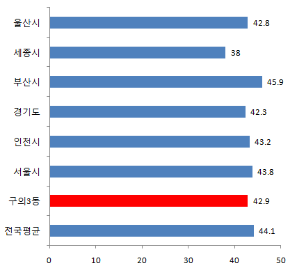 구의3동 8월 평균연령은 42.9세입니다