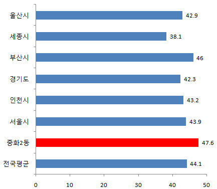 중화2동 2022년 1인 가구수는 7,438세대,54.61%