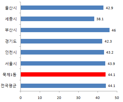 묵제1동 10월 평균연령은 44.1세입니다