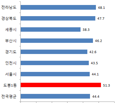 도봉1동 2023년 1인 가구수는 4,657세대,45.26%