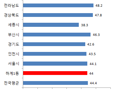 하계1동 4월 평균연령은 44세입니다