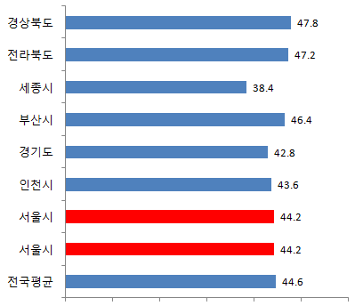 서울시 7월 기준 1인 가구수는 1,984,710세대,44.38%