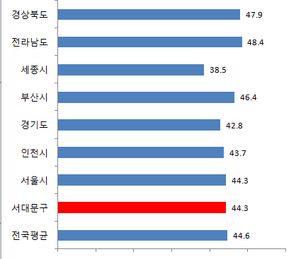 서대문구 8월 평균연령은 44.3세입니다