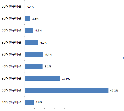 신촌동 20대 인구비율 42.2%
