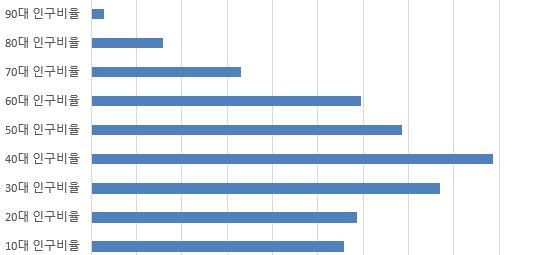 차트를 보면 세곡동의 인구는 젊은층과 중년층에