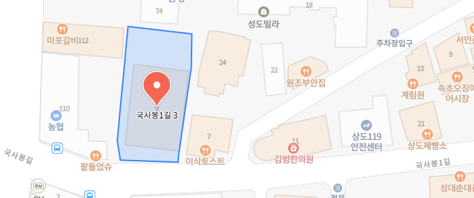 주소위치: 서울특별시 동작구 동작대로29길 36, 2층 (사당동)