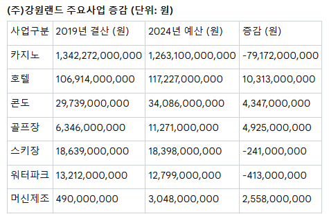 2024년 예산 기준 강원랜드의 주요 사업 내역