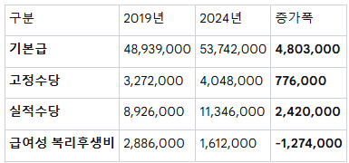 강원랜드 정규직 평균보수는 2019년과 비교하면 다음과 같습니다.