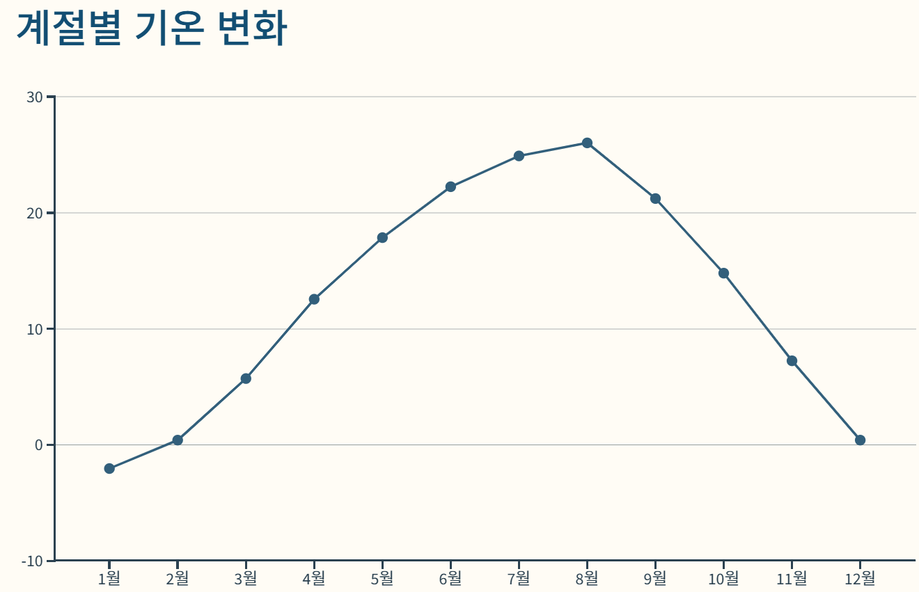 서울 중구의 기온은 사계절이 뚜렷한 대륙성 기후의 특징을 잘 보여줍니다.
