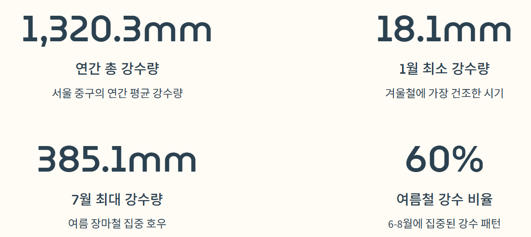 서울 중구의 강수는 계절적 편중이 매우 큰 특징을 보입니다.