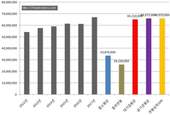 고용노동부에서 발표한 2016년 대기업 평균연봉과 중소기업 연봉,