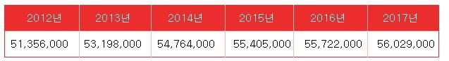 구분 | 2012년 | 2013년 | 2014년 | 2015년 | 2016년 | 2017년 |