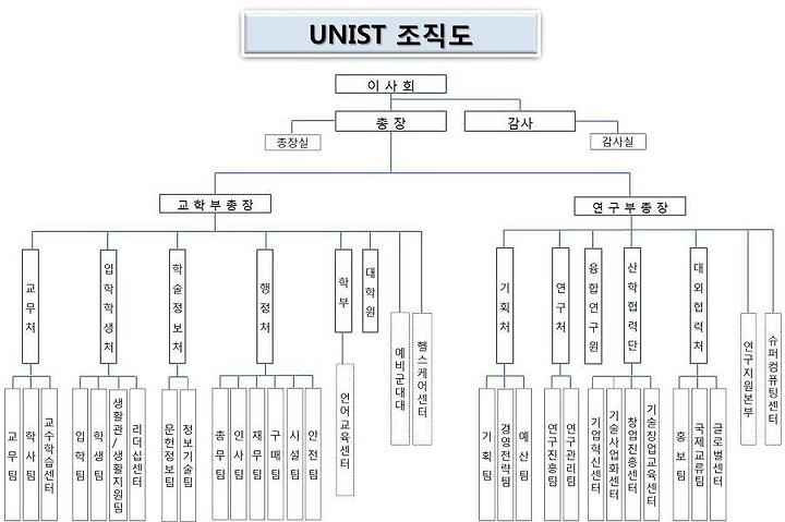 울산과학기술원 조직도입니다. 주무기관은 과학기술정보통신부입니다.