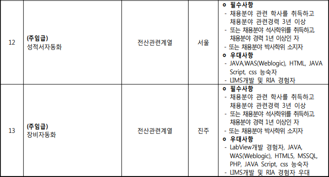 -학력은 채용분야별 자격요건이 있습니다. 전공은 복수전공 인정됩니다.