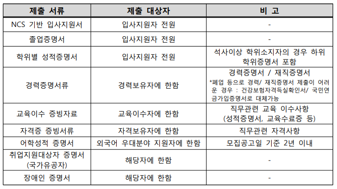 한국산업기술시험원 정규직 응시자 제출서류