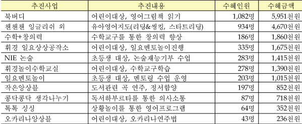 동대문시설관리공단 주요 특성화 프로그램 리스트