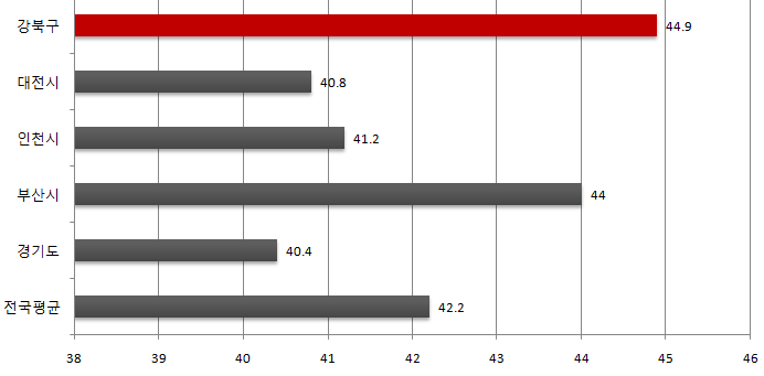 강북구에는 서울시 인구의 3.25%가 거주합니다.