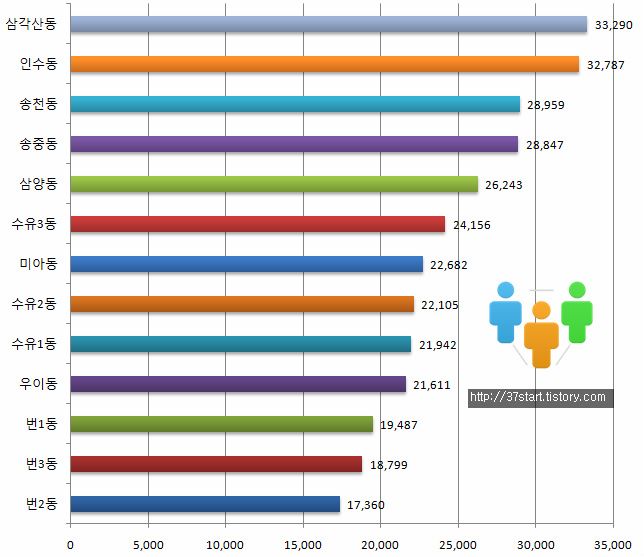 강북구 2019년 2월 인구 통계 주요 항목별 정리