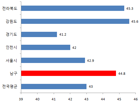 남구 용호제1동 평균연령은 43.3세