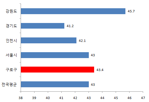 서울시 인구의 4.17%가 구로에 거주합니다.