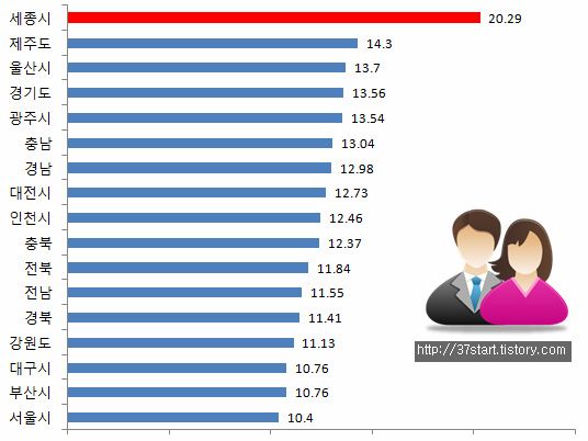누구나 예상할 수 있듯이 세종시 유소년 인구비율이