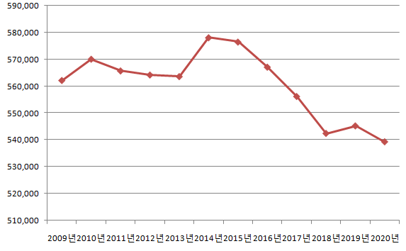 2021년 6월말에 집계한 서울시 강남구의 인구통계